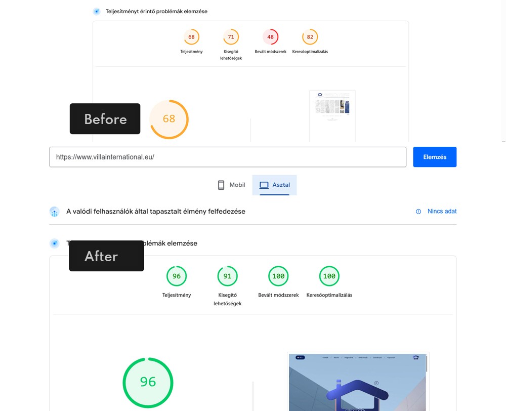 Villa International Zrt.’s previous website was outdated both technically and from a user experience perspective. It was not mobile-friendly, lacked a secure HTTPS connection, and featured overly complex navigation. The references page, in particular, relied on excessive filtering options that confused users, making the site difficult to navigate and ineffective in supporting the decision-making process of potential clients.